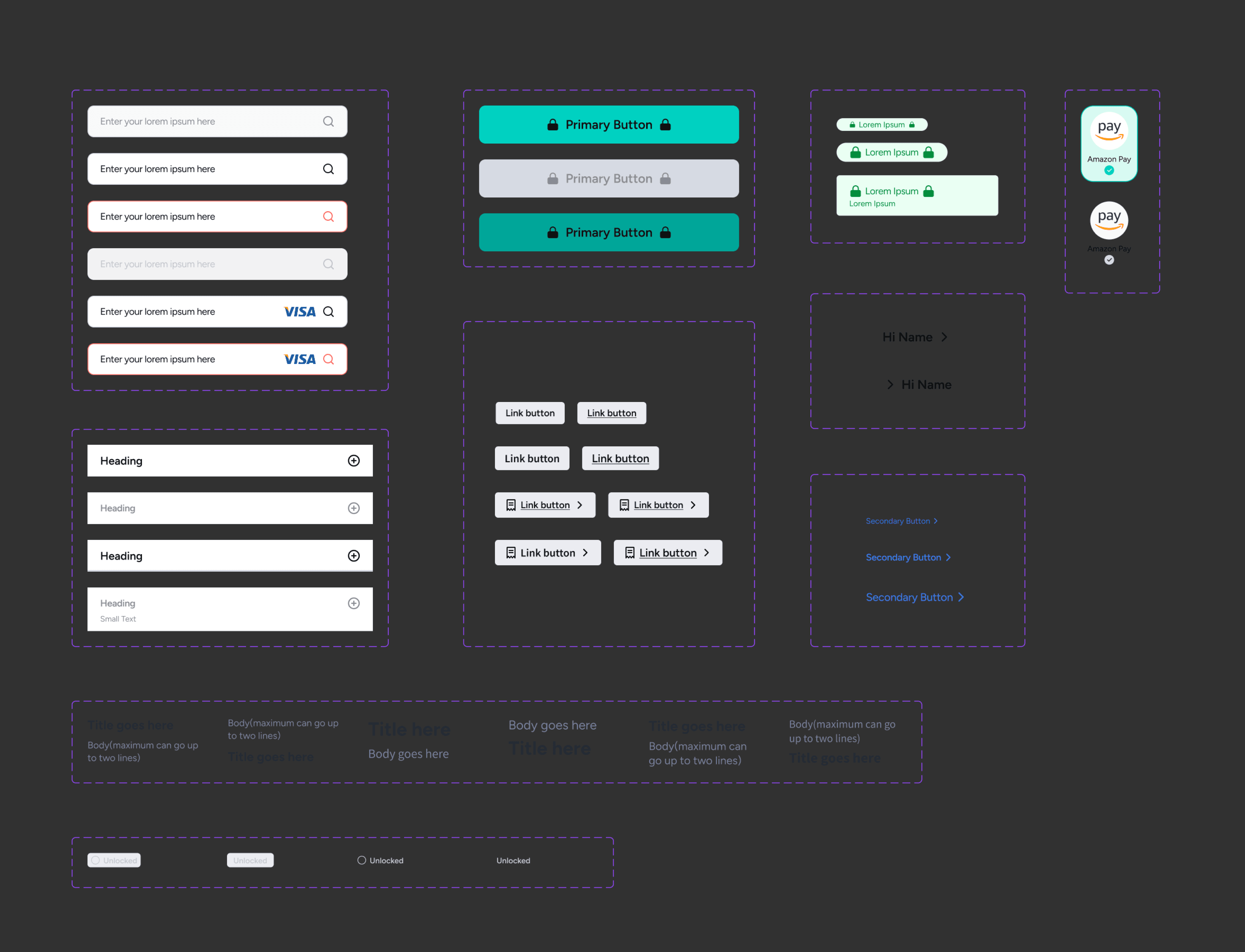 I created core Molecules by combining Atoms to form simple, functional UI units: the Text Field, Sub Headers, Button, and Info Label. These Molecules were the essential connective tissue used to construct all the interactive modules within the Repayment Journey, ensuring consistency in every user action and status update.